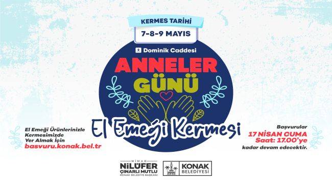 Konak’ta artık bir gelenek olan Anneler Günü Kermesi’ne başvurular başladı. Anneler Günü’nünü el emeği hediyelerle taçlandıracak kermeste stant açmak için son başvuru tarihi 17 Nisan.