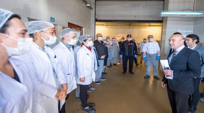 İzmir Büyükşehir Belediyesi Aşevi’nin adeta fabrika gibi çalıştığını ifade eden Başkan Soyer, “Muazzam bir çalışma var burada. Arı kovanı gibi burası. Arkadaşlarımın her biriyle iftihar ediyorum çok zor bir iş. Günde yaklaşık 19 bin kişi için yemek çıkarıyorlar hakikatten ağır bir işleri var. 24 saat çalışıyorlar her birinin emeğine sağlık” dedi. Başkan Soyer, Ramazan dayanışmasını her ilçeye taşıyacaklarını dile getirek şöyle konuştu: “Ramazan ayı boyunca 350 mahalleye 200 bin kişilik, 9 Biz İzmir dayanışma noktasında da 300 bin kişilik iftar sofrası kuruyoruz. 40 bin gıda paketi dağıtıyoruz. Üniversiteli öğrencilerimiz için 60 bin kişilik iftar sofrası açıyoruz. İzmir’de ramazan ayı boyunca dayanışmayı her ilçeye taşıyacağız.”